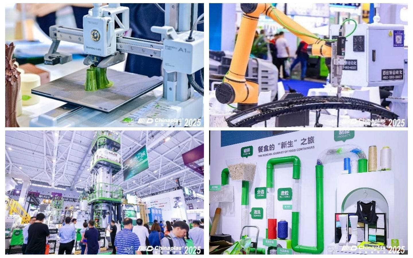 再生塑料、生物基、可降解塑料、回收技术、数字化技术、高效节能生产设备等将成为展会亮点,“CHINAPLAS 2026 国际橡塑展”将以实景演示形式,让“十五五”规划中的智能、绿色未来照进现实。