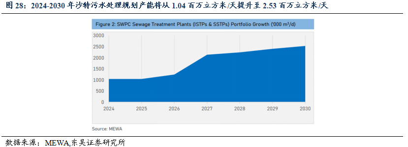中东和北非为全球最大的供水与污水处理项目市场,城市化和工业化的推进将带动水阀需求持续增长。根据GlobalData,截至2025年末,全球约有6309亿美元的水务和污水处理建设项目(统计口径涵盖前期规划到执行阶段),其中约69%(4375亿美元)的项目处在执行或执行前期(设计、招标和授标)阶段。中东和北非占比最高,达到40%(约2500亿美元,其中GCC成员国占主导地位),这些区域对海水淡化、废水处理依赖度极高,以满足饮用水供应需求。2024-2030年沙特海水淡化规划产能将从4.2百立方米/天提升至7.4百立方米/天,增长约75%;污水处理规划产能将从1.04百立方米/天提升至2.53百立方米/天,翻倍以上增长。